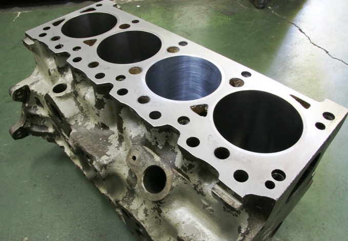 スリーブ圧入して上部面研も行い、シリンダー内もホーニング仕上げが済みました。